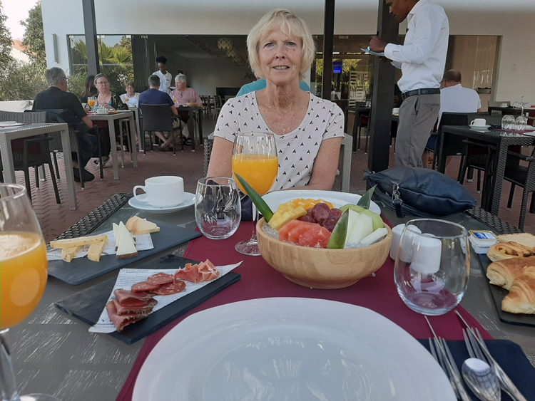 Na een paar uur slaap staan we alweer naast ons bed en gaan we op zoek naar een rustige ontbijtgelegenheid in het resort. We zijn lichtelijk verbijsterd over de omvang ervan, het lijkt meer een klein dorp. Voornamelijk jonge gezinnen met krijsende kinderen en pensionado's die het direct na het ontbijt op een zuipen zetten.