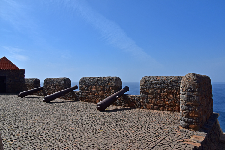 Het Forte Real de São Filipe is geheel gerestaureerd. Ernaast is een bezoekerscentrumpje waar we kaartjes kopen en een film van dit gebied bekijken. Daarna, hop het fort in.