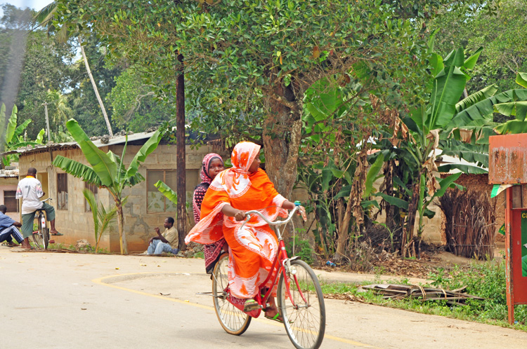 Het is ongeveer zeventig kilometer noordwaarts van Jambiani naar Phani Mchangani. We willen graag foto's maken onderweg, maar dat is niet eenvoudig. Zodra men door heeft dat we foto's maken worden de mensen of boos en/of stormen op je af om te cashen. Vandaar dat we iedere keer als we door een dorp rijden en moeten afremmen voor de verkeersdrempels stiekem een foto proberen te maken vanuit de rijdende auto.
