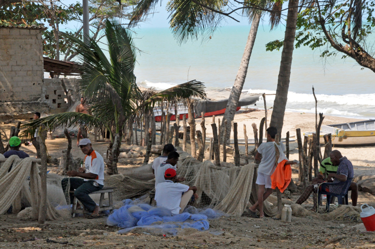 De weg terug voert langs Dibulla waar we gaan lunchen op een terras pal aan zee. We zijn de enige klanten maar toch duurt het drie kwartier eer er iets te eten op tafel staat. Heerlijke vis met kokosrijst, dat dan weer wel. Met zo'n uitzicht valt het wachten niet al te zwaar.