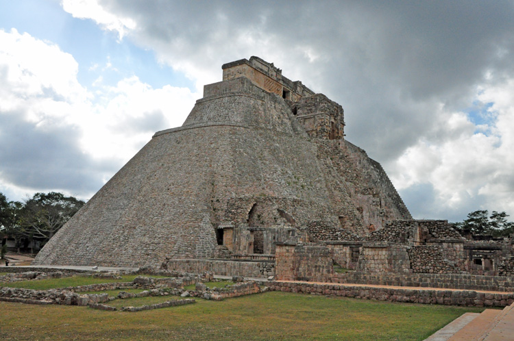 De Ruta Puuc, wat heuvelroute betekent, ligt ten zuiden van Mérida en voert je langs Maya ruïnes. Na een dik uur rijden komen we bij Uxmal terecht. Deze stad is zeker net zo imponerend als Chichén Itzá. Het is hier beduidend minder druk en het geeft meer het gevoel van een echte stad dan de min of meer losse bouwwerken van Chichén Itzá. Direct na binnenkomst de tempel van de dwerg.