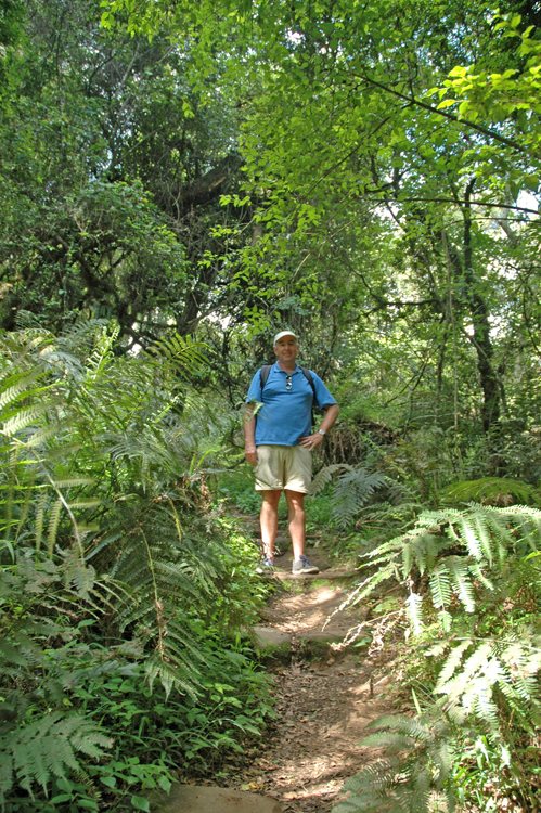 We maken nog wel een "oefenwandeling", de "blue grotto trail". De wandeling van twee uur door het tropisch regenwoud waar het af en toe stikdonker is.