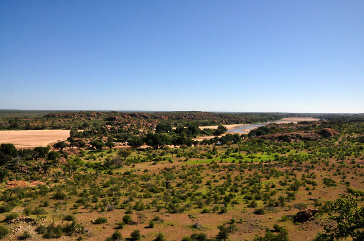 Na een stuk te hebben gereden komen we bij de treetop boardwalk. Een prachtige, één kilometer lange houten boardwalk, ondergepoept door de apen, vanwaar je goed zicht hebt op de rivier de Limpopo. Deze roodsnavelbuffelwever heeft een gigantisch nest gemaakt.