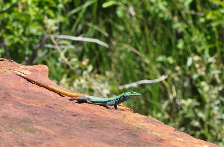 Er zijn vier "decks" vanwaar je de drie landen kunt bekijken. Je moet uitkijken dat je op het pad er naar toe niet over een lizard struikelt. Hieronder een vrouwelijk exemplaar van de platte rotshagedis.